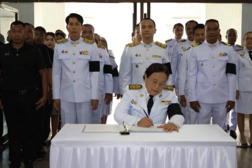 นางสาวอิ่มใจ คชพันธ์ พัฒนาการอำเภอเมืองพัทลุง ร่วมลงนามแสดงความไว้อาลัย และร่วมพิธีถวายน้ำสรงพระบรมศพเบื้องหน้าพระฉายาลักษณ์สมเด็จพระนางเจ้าสิริกิต์ พระบรมราชินีนารถ พระบรมราชชนนีพันปีหลวง
