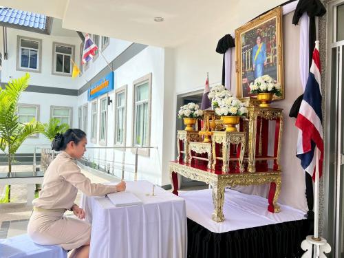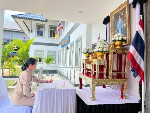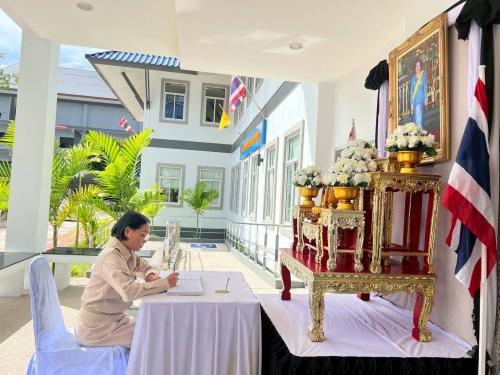 นางสาวอิ่มใจ คชพันธ์ พัฒนาการอำเภอเมืองพัทลุง พร้อมด้วยเจ้าหน้าที่พัฒนาชุมชนอำเภอเมืองพัทลุง นักศึกษาฝึกงาน มหาวิทยาลัยทักษิณ ร่วมลงนามถวายความอาลัย เบี้องหน้าพระฉายาลักษณ์ สมเด็จพระนางเจ้าสิริกิต์ พระบรมราชินีนารถ พระบรมราชชนนีพันปีหลวง ด้วยความจงรักภักดีและสำนึกในพระเมตตาธรรมที่ทรงมีต่อพสกนิกรชาวไทยตราบนิจนิรันดร์