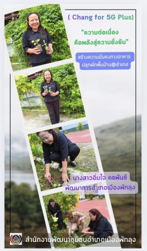 นางสาวอิ่มใจ คชพันธ์ พัฒนาการอำเภอเมืองพัทลุง ปลูกผัก ณ ที่ว่าการอำเภอเมืองพัทลุง และเชิญชวนผู้นำชุมชน ประชาชน ร่วมปลูกผักเพื่อสร้างความมั่นคงทางอาหาร