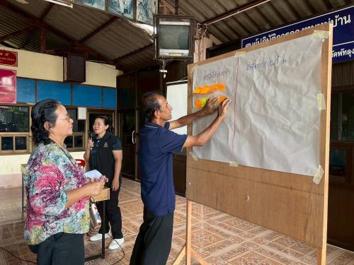 - กลุ่มเป้าหมายร่วมกันทำแบบประเมินหมู่บ้าน/ชุมชนธรรมาภิบาล