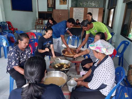 ในการนี้มีการฝึกปฏิบัติอาชีพการทำขนมเจาะหู เพื่อเป็นการสร้างรายได้แก่ครัวเรือนเป้าหมายต่อไป