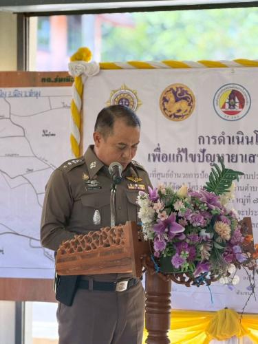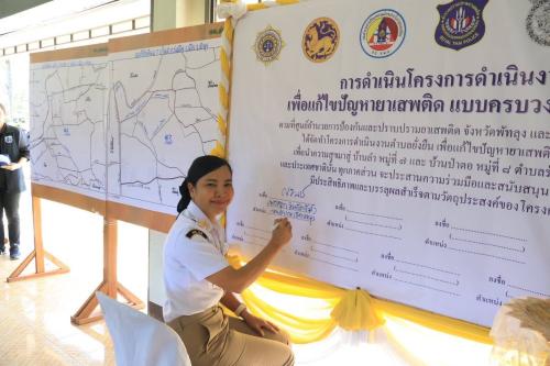 และมี พ.ต.อ.สมปราชญ์ กรรณกานนท์ ผู้กำกับการสถานีตำรวจภูธรเมืองพัทลุง กล่าวรายงานโครงการ พร้อมด้วยปลัดอำเภอ สาธารณสุขอำเภอ ท้องถิ่นอำเภอ ผู้แทนศูนย์ส่งเสริมการเรียนรู้อำเภอ นายกเทศมนตรีตำบลร่มเมือง ผอ.รพ.สต. ผอ.สถานศึกษา กำนัน ผู้ใหญ่บ้าน ผู้ช่วยฯ แพทย์ประจำตำบล สารวัตรกำนัน อสม. และราษฎรกลุ่มเป้าหมายโครงการฯในพื้นที่หมู่ที่ 7 และ 8 ตำบลร่มเมือง ร่วมพิธีเปิดและรับฟังแนวทางการดำเนินงานโครงการ